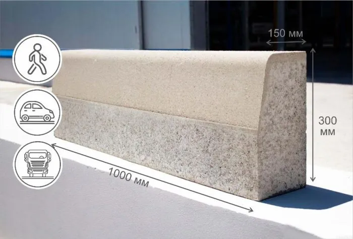 Бордюрный камень укрепляет дорожное полотно, отделяет проезжую часть от пешеходной зоны, применяется для водоотвода, уводя стоки с дороги в водоприемники или водоотводные лотки, способствует безопасности дорожного движения. Бордюр дорожный используют для создания визуальной границы автостоянок, придворовых территорий многоэтажных жилых комплексов, детских площадок. Срок эксплуатации дорожного покрытия с использованием бордюрного камня увеличивается в несколько раз.При производстве бордюрного камня особое внимание уделяется прочности изделия, так как при его эксплуатации бордюрный камень подвергается механическим нагрузкам и в меньшей степени негативному влиянию окружающей среды.