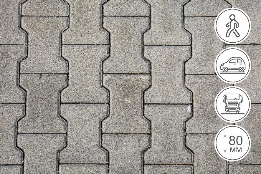 "Двутавр" – камни, напоминающие букву "Т". Специфика этой формы – надежное сцепление отдельных плиток между собой. По форме и свойствам двойное "Т" идеально подходит для обустройства территорий вокруг объектов промышленного назначения, перронов, вокзалов, АЗС и т. п.