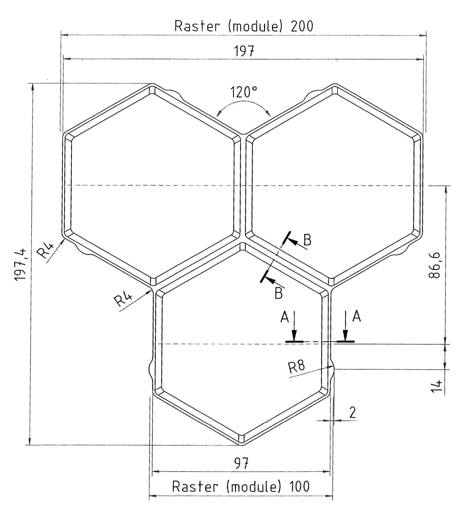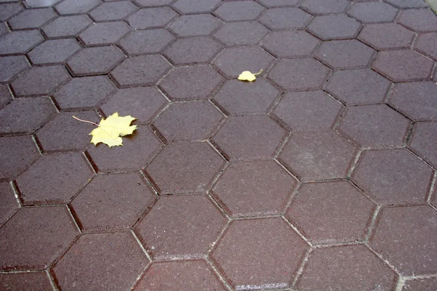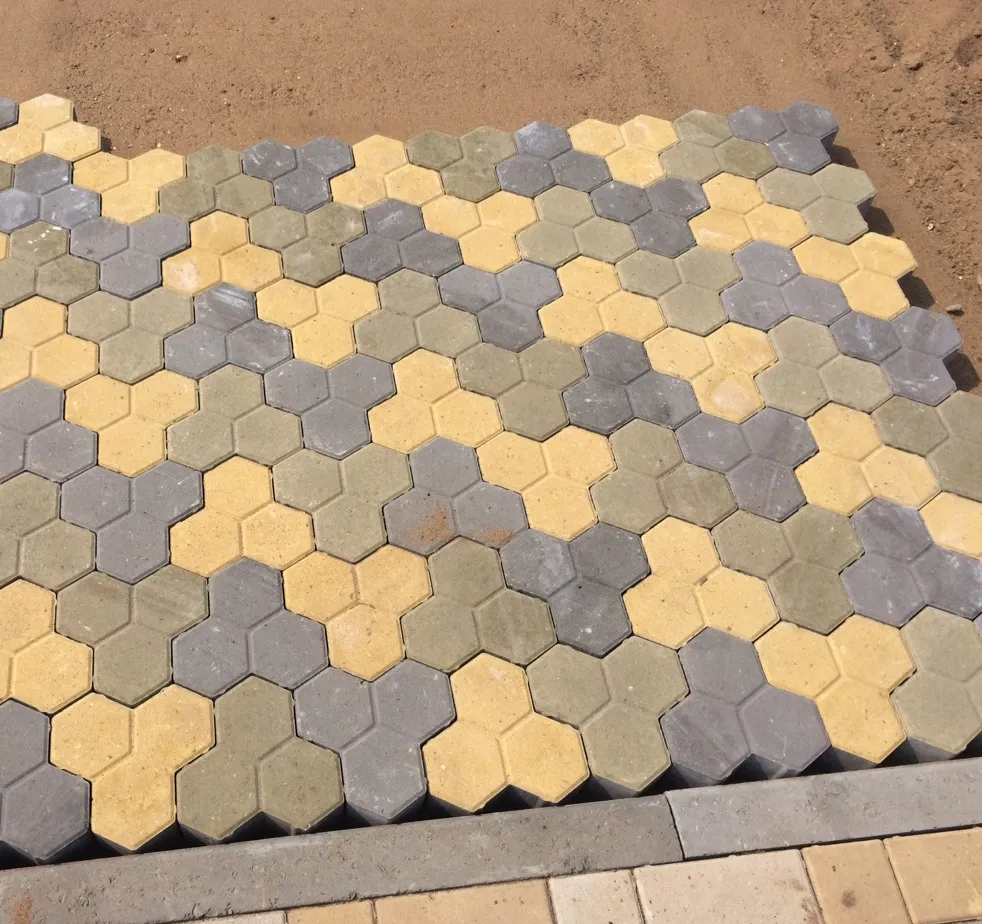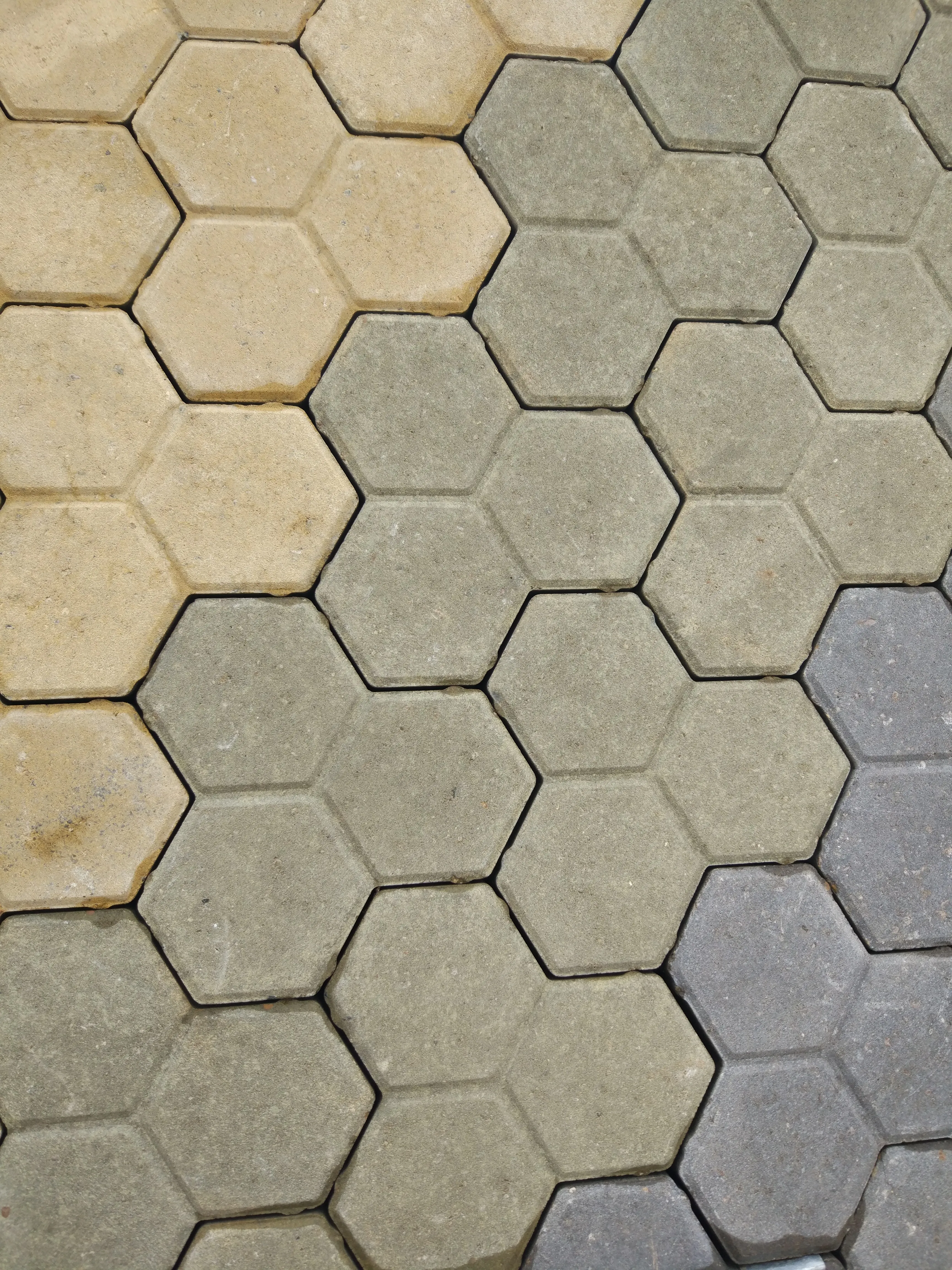 Брусчатка изготовлена в виде симметричных шестиугольников, напоминающих своей конфигурацией пчелиные соты. Такая форма очень удобна в укладке и позволяет создавать на дорожном покрытии узоры, поражающие свежестью идеи и оригинальностью.