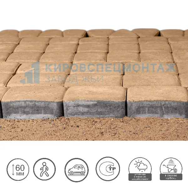 Данный тип брусчатки продается поддонами. Каждый поддон состоит из 10 рядов с одинаковым количеством фигурных элементов